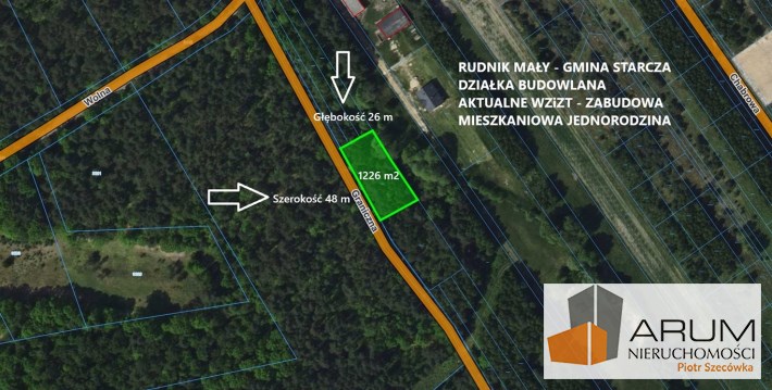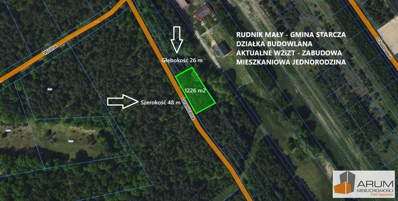 Prezentujemy do sprzedania urokliwą działkę budowlaną o powierzchni 1226 m2 położoną w lesie w miejscowości Rudnik Mały przy ulicy Granicznej